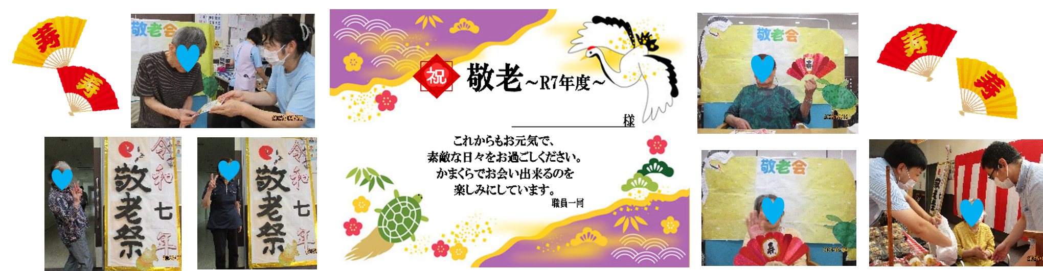 行事の最後には「デイかまくらオリジナル敬老カード」と「手作りのストラップ飾り」を贈呈し、来年も再来年も、その次も…お祝いさせて頂きたい想いと、これからも元気に過ごして頂きたい願いを込めて閉会しました。