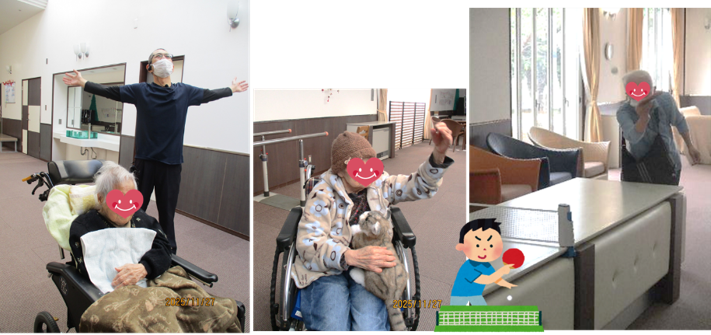 昼食後の30分間という短い時間ではありましたが「日ごろの運動不足を解消するぞ!」と職員達が集まり、笑い声や歓声を聞きつけた入居者様も集まって、会場となった交流スぺ―スには本気になるあまり転びそうになっている職員の悲鳴交じりの笑い声と、入居者様の笑顔が溢れとても良い時間を過ごすことができました。